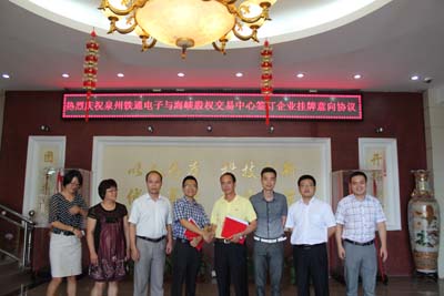 泉州市铁通电子(集团)有限公司与中国海峡股权交易中心签订了企业挂牌意向协议书