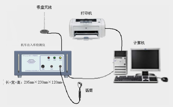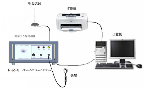 WHKJ-Ⅱ机车出入库检测仪(以下简称库检台)设置于机车车库的适当地点,通过无线方式对无线列调机车电台的主要参数、性能指标进行自动检测,并可以通过无线方式对机车上的无线列调车次号设备及调度命令设备工作是否正常进行测试。
